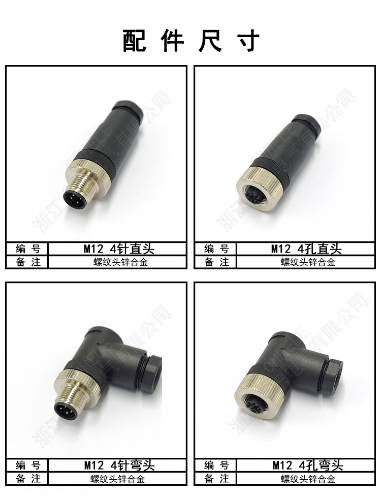 M12 连接器4针4孔 螺纹头锌合金